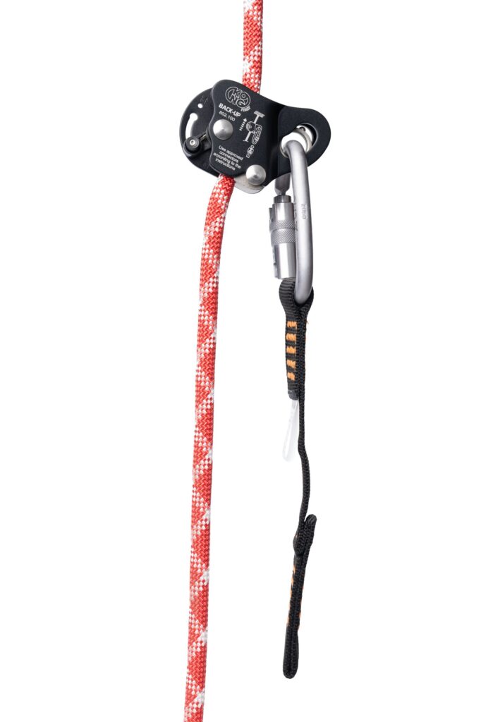 Placing the Back-Up over a shoulder assists in releasing the cam and allowing the device to move freely. This mobility is further enhanced by the magnet accessory, which holds the Back-Up in place for smooth travel with the technician. High quality and made in Italy, the Back-Up reliably arrests falls, slides, or uncontrolled descents on vertical or angled rope. It’s the ideal companion for the rope access technician.