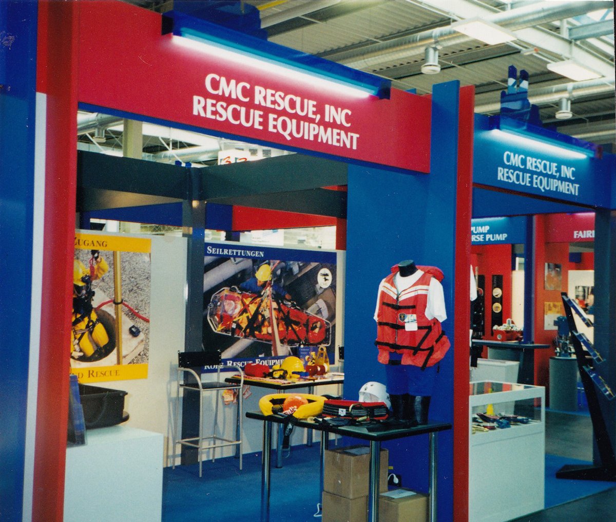 A rewind in time CMC Rescue trade show booth at Intershutz, Germany